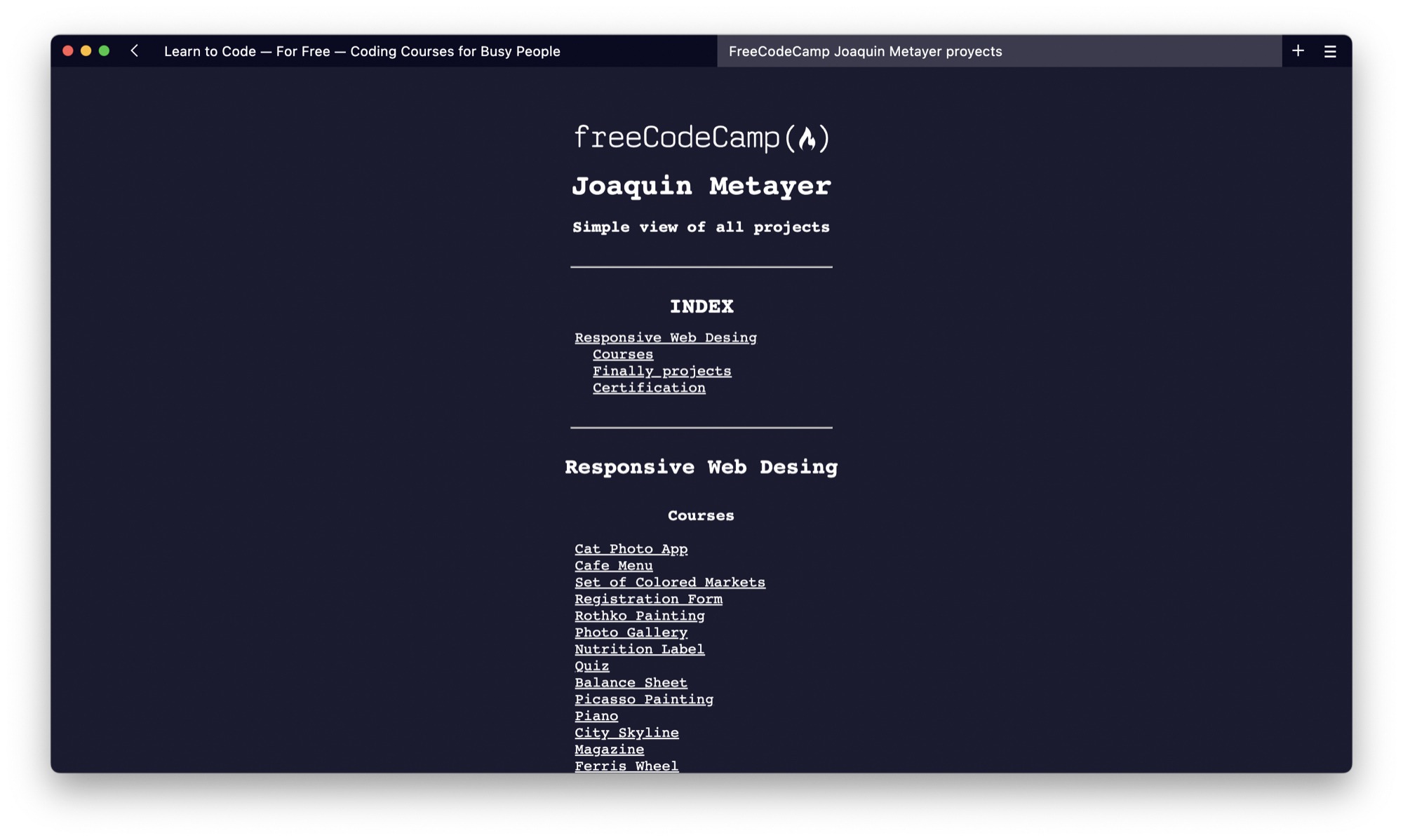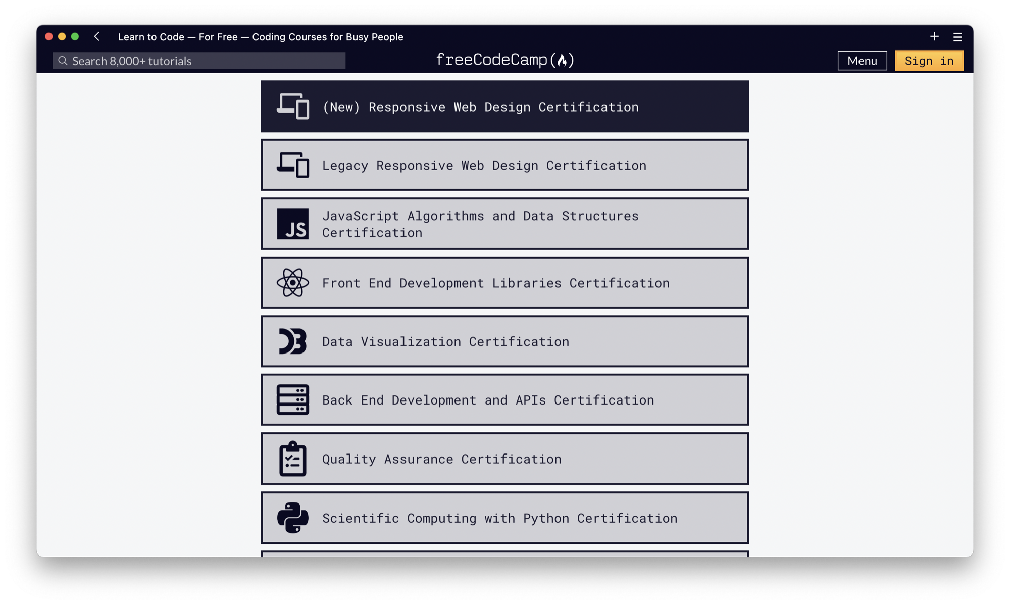 FreeCodeCamp es un sitio web donde podemos aprender sobre programación de forma gratuita, mediante resolución de ejercicios y entregando los finales. Y detalle… al final de cada cursada te dan un certificado para verificar que cumpliste con las entregas.